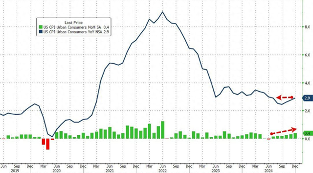 周三的解释标识着2024年终末一次CPI数据发布,亦然好意思国总统拜登将权益顶住给特朗普之前的终末一份重磅数据。尽管最近这波通胀的原因是多方面的,而且主要与新冠疫情过火后续影响权衡,但物价的急剧高涨对好意思国东说念主酿成了严重冲击,并成为了2024年选举中一个要道的影响身分。